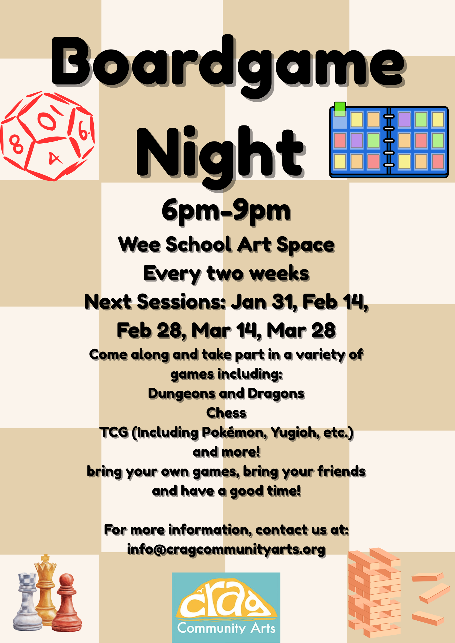 Boardgame Night starts Jan 17th 6PM-9PM, repeats fortnightly