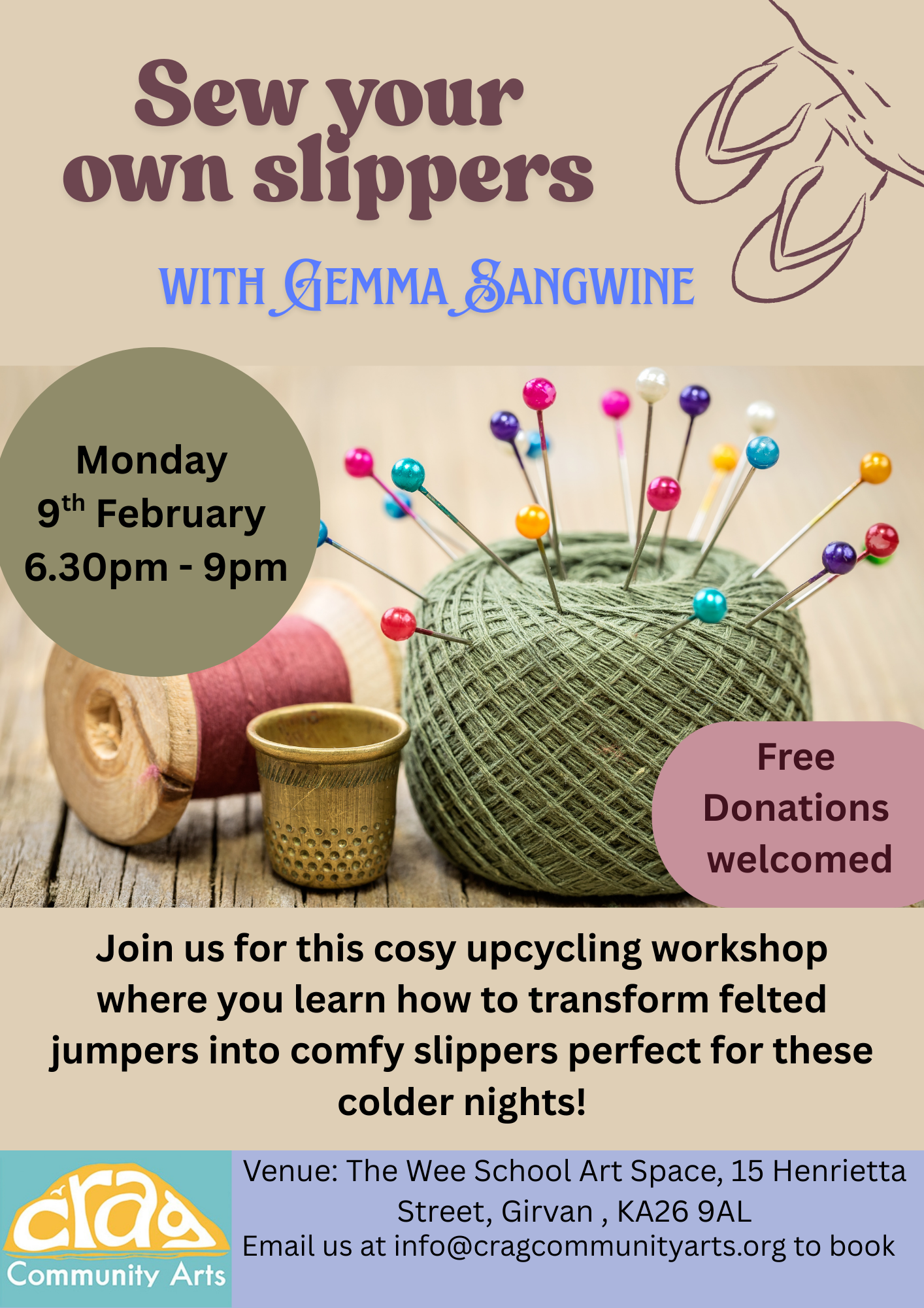 Sew your own Slippers: Mon 9th February 6:30PM – 9PM