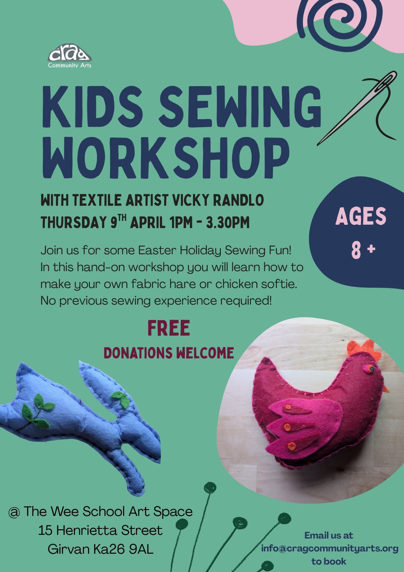 Kids Sewing Workshop Thursday 9th April, 1pm – 3:30pm, FREE