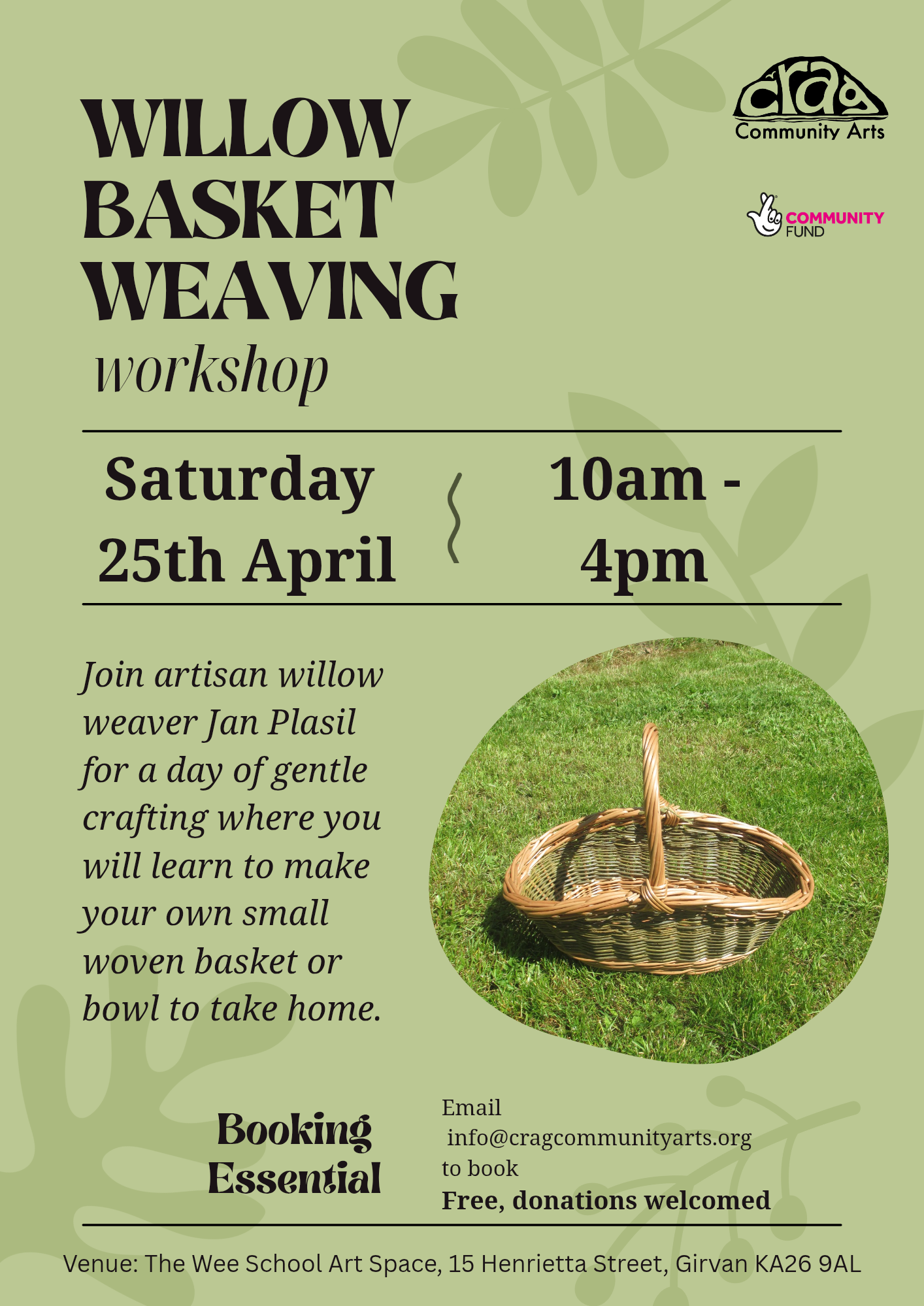 Willow Basket Weaving Workshop 25th April, 10am – 4pm, free, booking essential